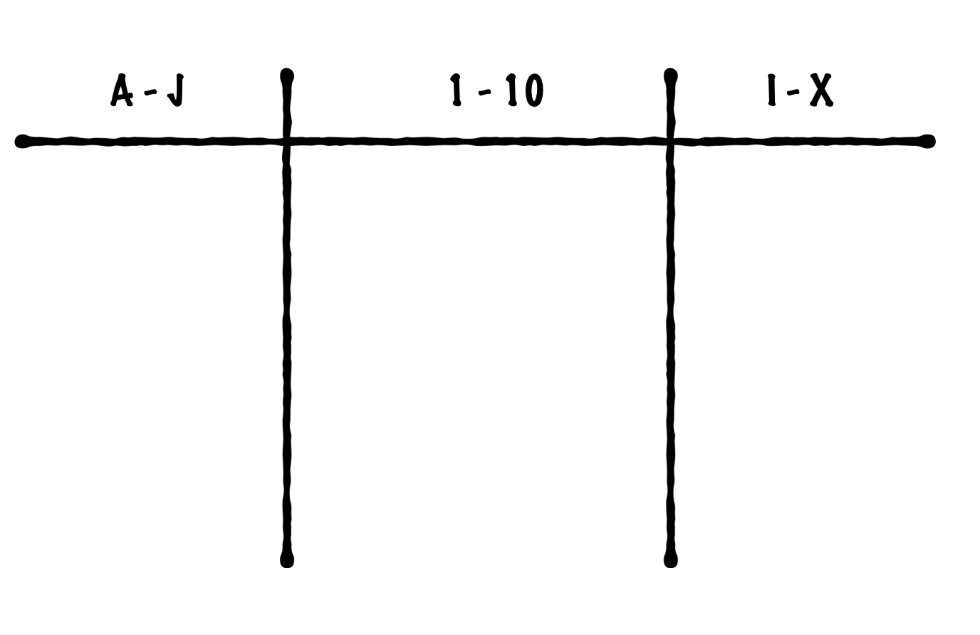 Start with a very simple exercise two boards with 3 columns that the two individuals will race to complete. The first column is for the alphabet, the second column is for digits, and the third column is roman numerals.